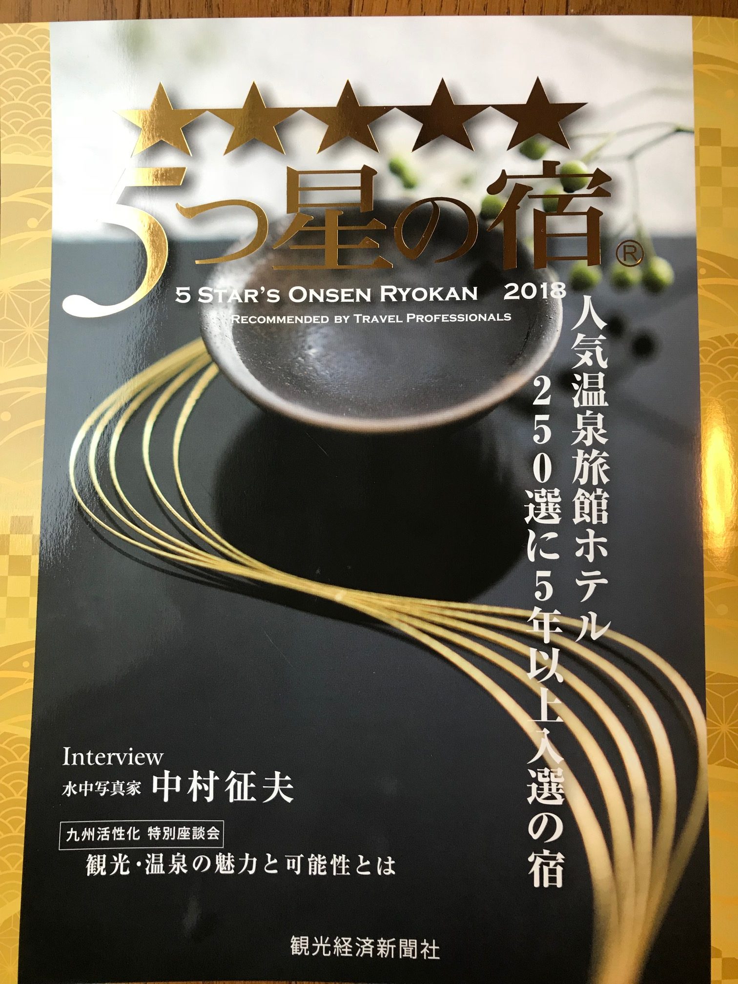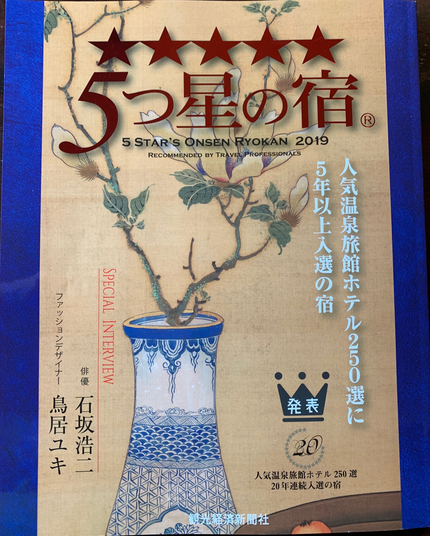 人気温泉旅館ホテル・250選の五年連続入選と20年間連続受賞という名誉ある賞でございます。「五つ星の宿」は、観光経済新聞社さんが7万枚の投票ハガキを配布し集計されて、選出される歴史ある賞だそうです。