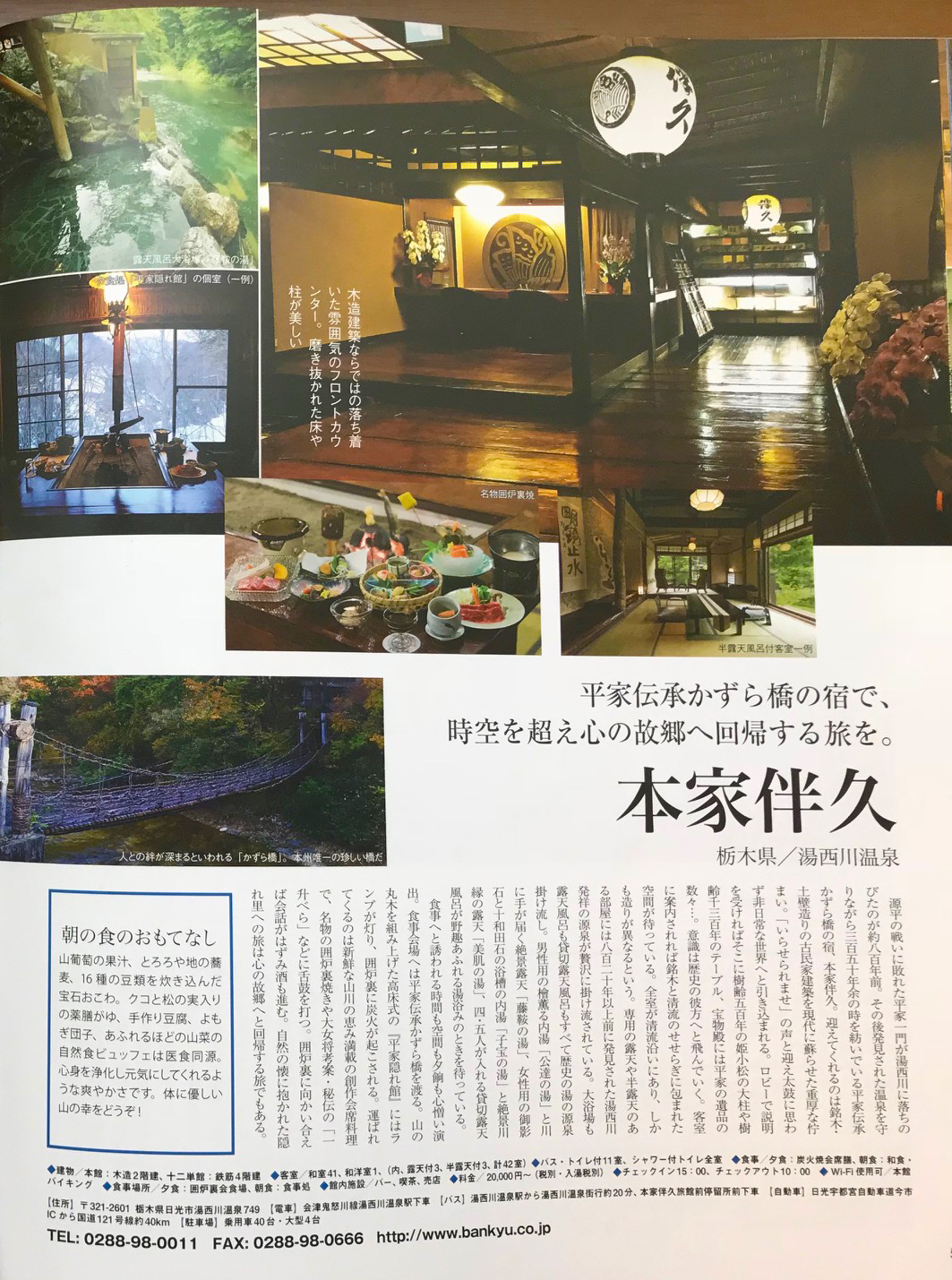 栃木県日光市湯西川温泉 350年の老舗 本家伴久 平家伝承かずら橋の宿