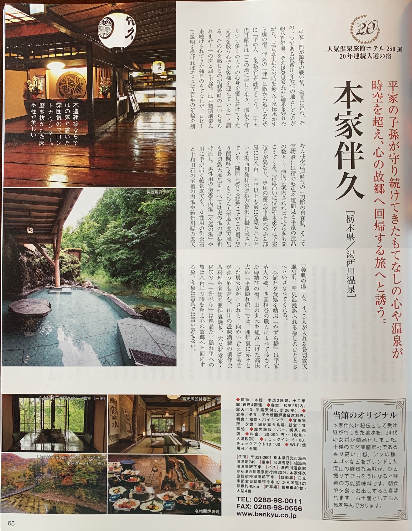 そして立派な御本「人気温泉旅館ホテル・250選に5年以上入選の宿」に掲載していただきました。誠に光栄なことで感謝申し上げます。これで15年間連続受賞となりました。