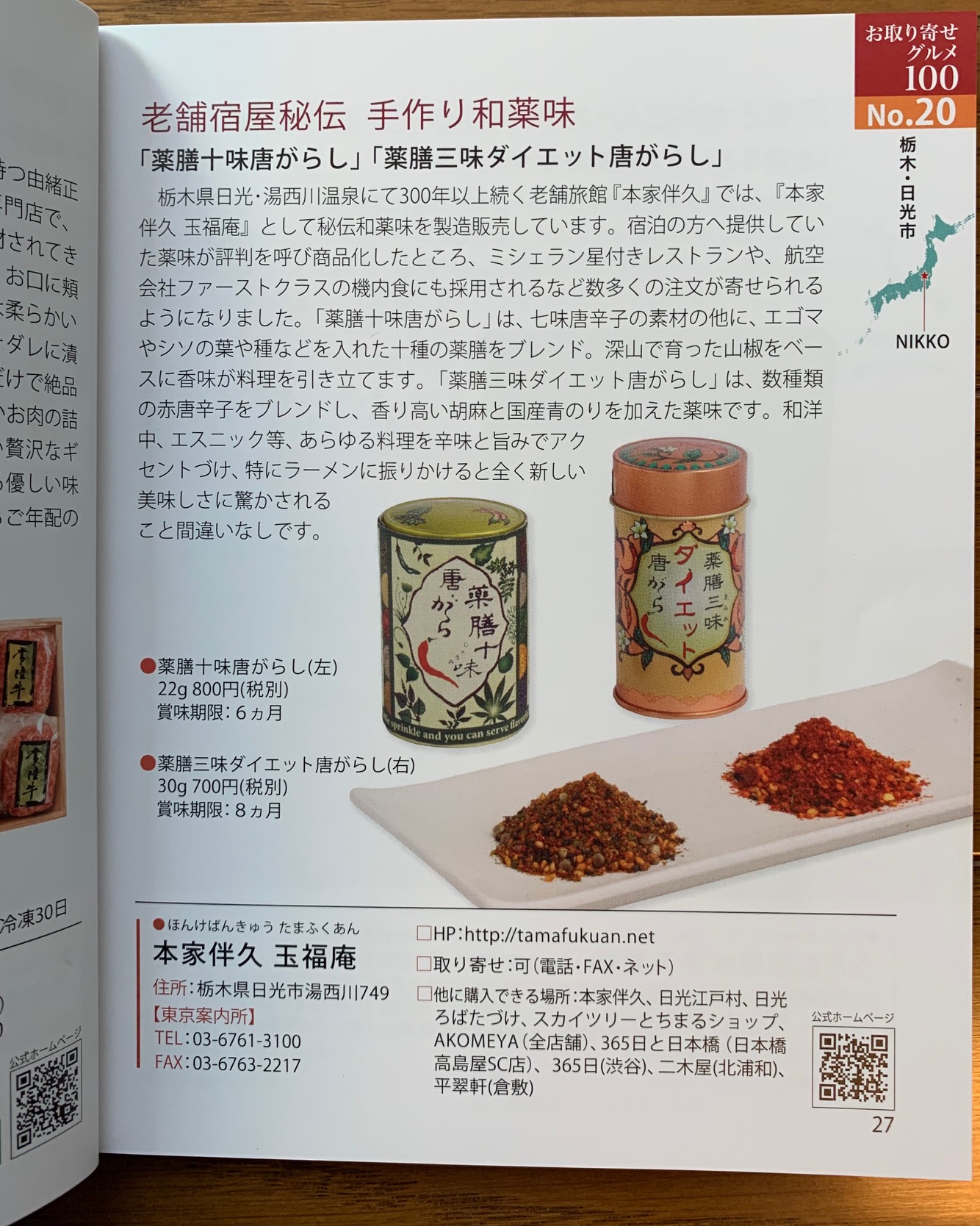 栃木県日光市の老舗旅館「本家伴久」のオリジナルの「薬膳十味唐辛子」を、ますます身近をお手元にお届けできるようになり、とても嬉しく存じます。お近くにいらっしゃた際は、ぜひお立ち寄りくださいませ!